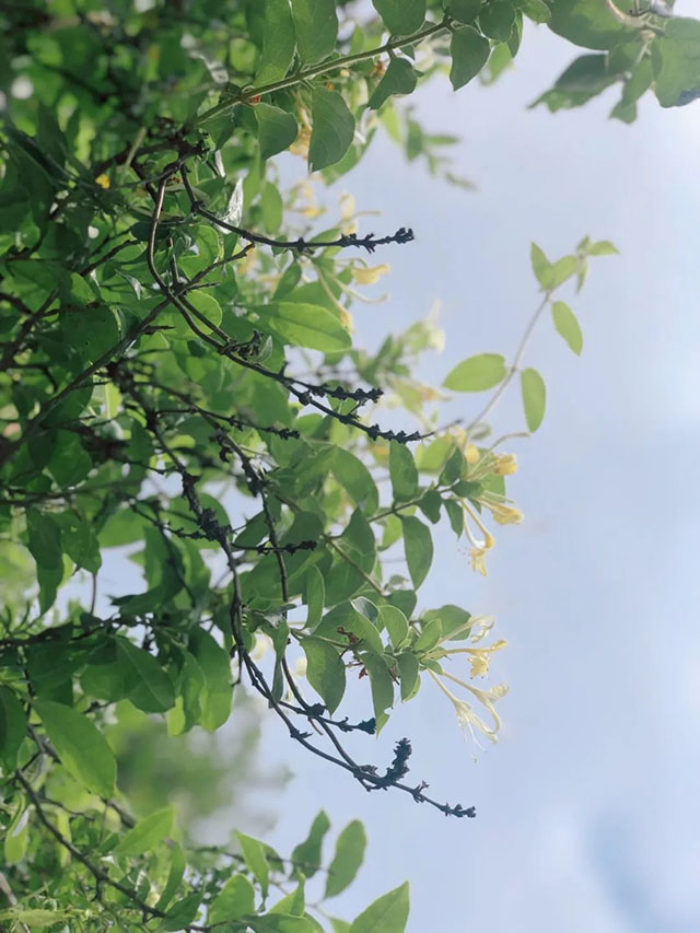 慕溪谷閑逛時(shí),驀然遇見(jiàn)一叢金銀花,大部分花朵已經(jīng)開(kāi)敗,唯余幾叢不忍告別初夏的小花,還在熏風(fēng)中搖曳。