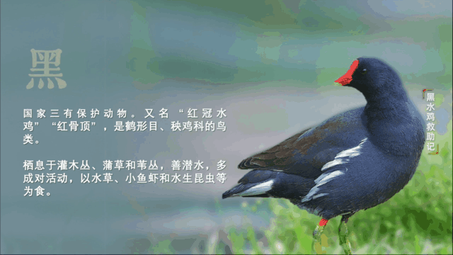 經(jīng)陸生野生動(dòng)物保護協(xié)會(huì )專(zhuān)家人員鑒定,這只黑色幼鳥(niǎo)是黑水雞,屬于國家“三有”保護動(dòng)物,“黑水雞”又名“紅冠水雞”“紅骨頂”,是鶴形目、秧雞科的鳥(niǎo)類(lèi)。棲息于灌木叢、蒲草和葦叢,善潛水,多成對活動(dòng),以水草、小魚(yú)蝦和水生昆蟲(chóng)等為食。