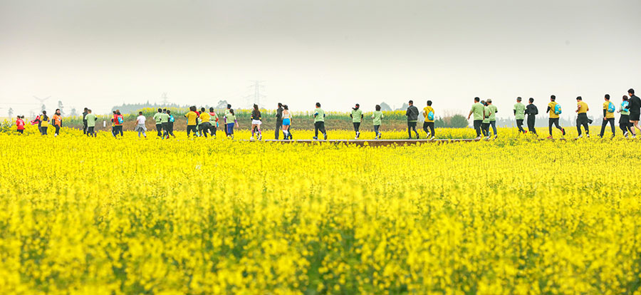 在本次比賽中,馬拉松賽道途徑金雞峰叢景區,跑友們將在萬(wàn)畝花海的簇擁下,向勝利的終點(diǎn)奔跑,共賞油菜花齊齊盛放之美。