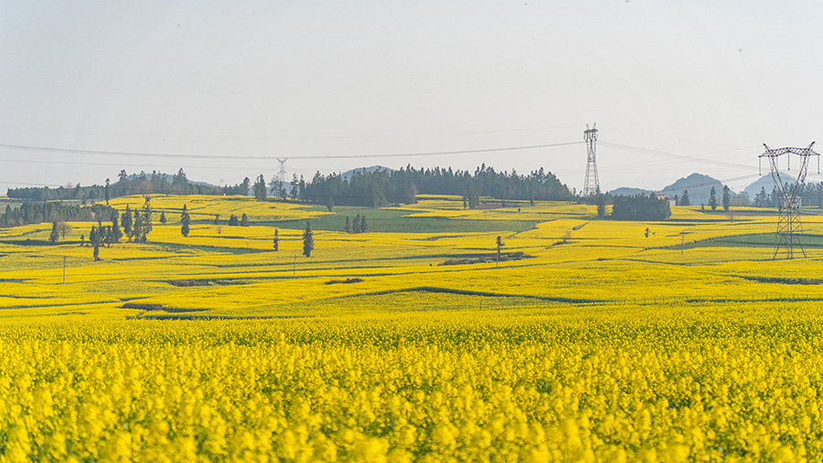 目前,金雞峰叢的油菜花已經(jīng)進(jìn)入盛放期,國內外游客在景區內,不僅可以欣賞到“金玉滿(mǎn)堂之鄉”的熱鬧景象,也可以登上老尖山棧道,欣賞峰林之壯美。