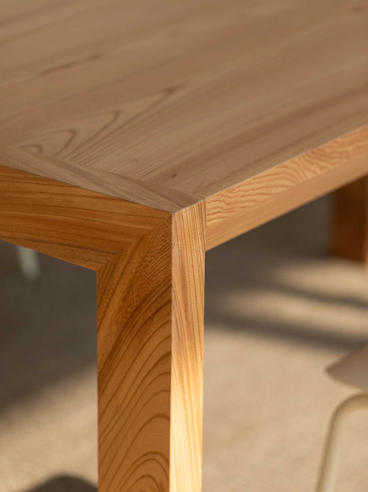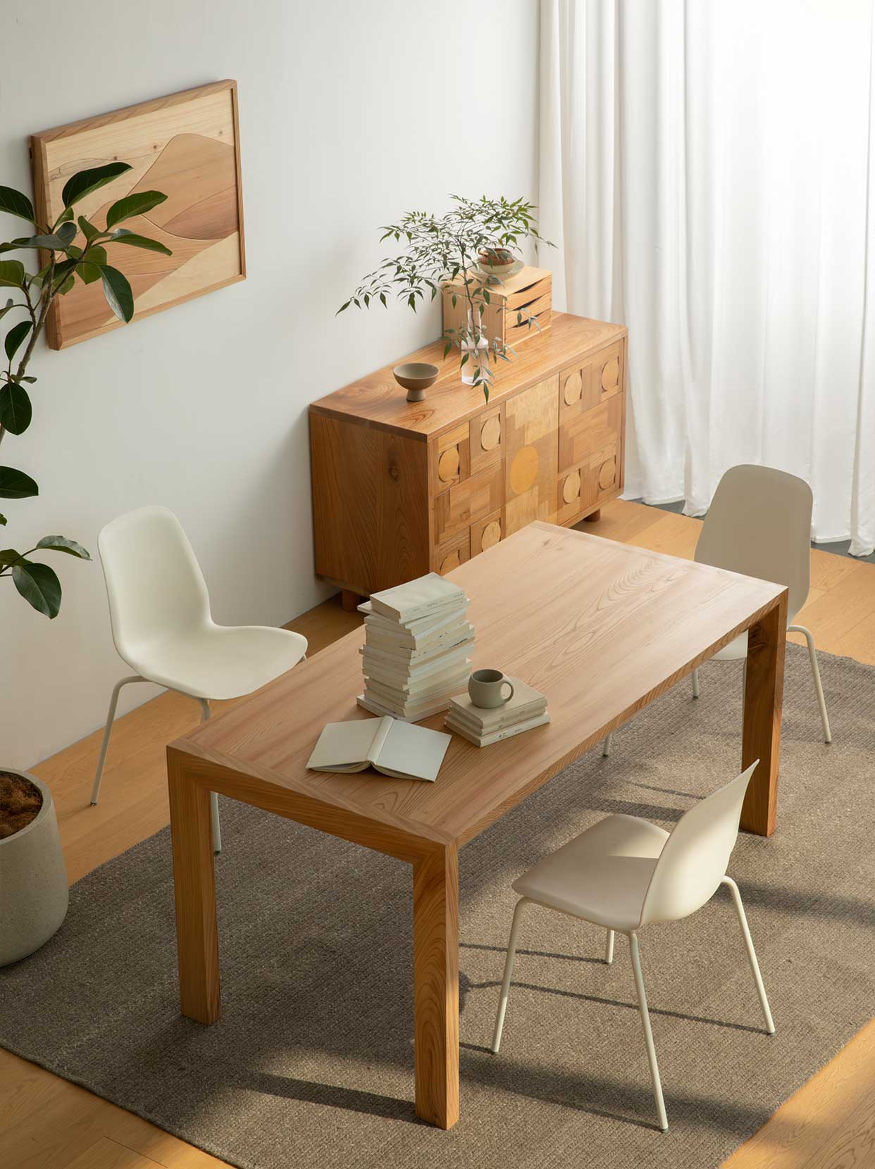 ?寬闊的櫸木拼板桌面,用料扎實(shí),紋理細膩