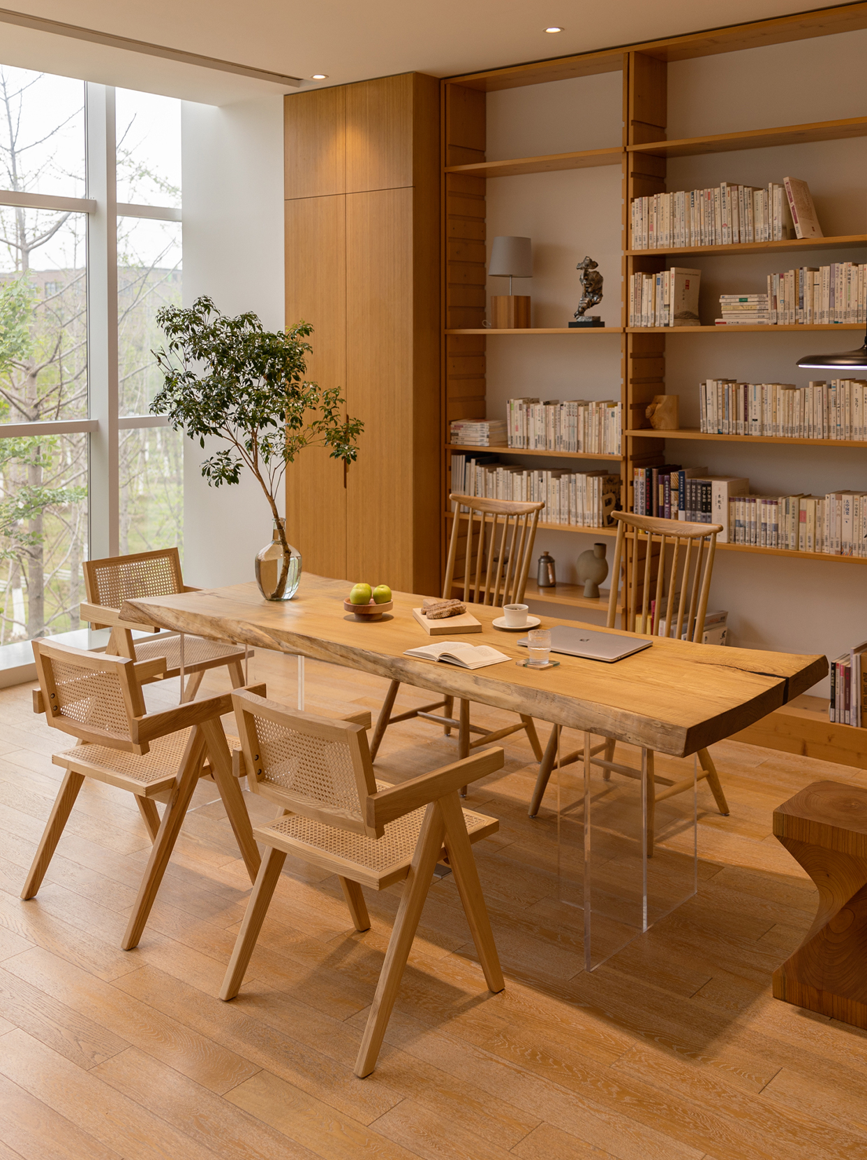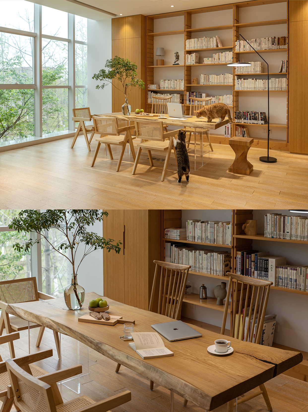4??茶空間+咖啡角:在一張美貌與實(shí)用兼具的實(shí)木大長(cháng)桌面前,你真的能忍住不來(lái)一杯茶or咖啡?周末會(huì )友、打發(fā)時(shí)間的最好伴侶。