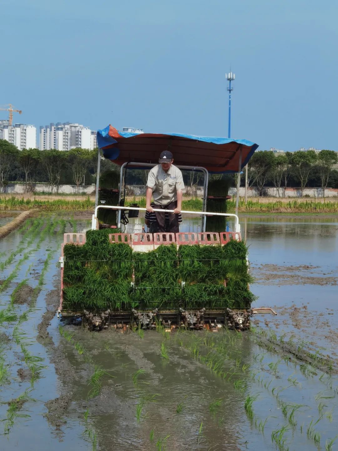 當秧苗生長(cháng)到巴掌高的時(shí)候,就可以移植到露天大田里生活。芒種時(shí)節,農人們嫻熟地開(kāi)著(zhù)插秧機,播種下一排排綠油油的秧苗。保持合理的行間距和株間距,能讓每一株水稻獲得充分的陽(yáng)光和能量。