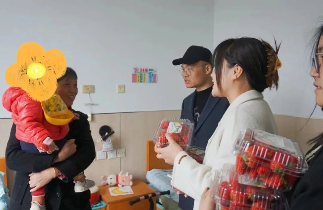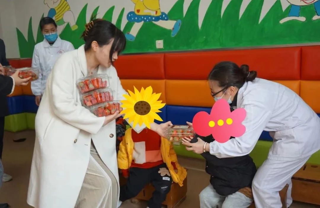我們帶著(zhù)100余份新鮮采摘的生態(tài)草莓來(lái)到新城街道社區衛生服務(wù)中心,看望并慰問(wèn)在院康復的青少年腦癱患兒。在符院長(cháng)和街道相關(guān)人員的帶領(lǐng)下,分別來(lái)到三樓康復部和四樓住院部。在康復部,參觀(guān)了解腦癱兒童康復的全過(guò)程,同時(shí)熱情地向醫護人員詢(xún)問(wèn)孩子的康復成效,可喜得是經(jīng)過(guò)語(yǔ)言、運動(dòng)等多方面的康復訓練,大部分小朋友都能恢復正常的學(xué)習生活。