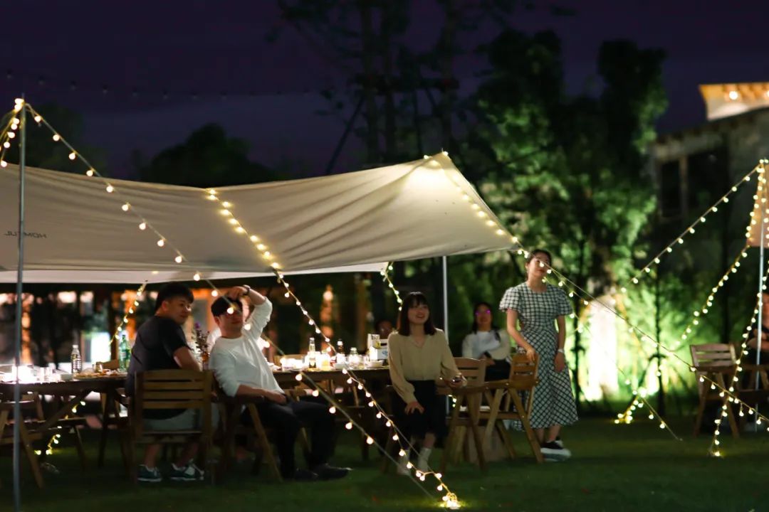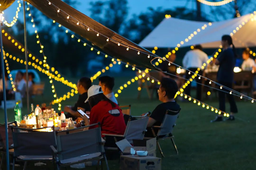 夏夜,褪去了白晝里熾陽(yáng)烘烤的炙熱,召喚著(zhù)在空調房里泡了一天的身體,接受自然的照拂。從湖畔吹來(lái)的風(fēng)會(huì )喚醒每一個(gè)毛孔,讓身心得以放松舒展,輕盈自在。夜幕降臨的星野營(yíng)地上,草坪夏夜的快樂(lè )在銀杏林旁開(kāi)啟,晚風(fēng)、星空、燒烤、音樂(lè )、煙火......人們可以在如水的夜晚里拋掉一切擾人瑣事,專(zhuān)注于炭火上烤物的滋味,敞開(kāi)心扉,把酒言歡,哼著(zhù)曲調跟著(zhù)音樂(lè )節拍搖擺,等綻放的煙花把歡樂(lè )氣氛推至高潮,沉醉一場(chǎng)美妙無(wú)比的微醺夏夜時(shí)光。
