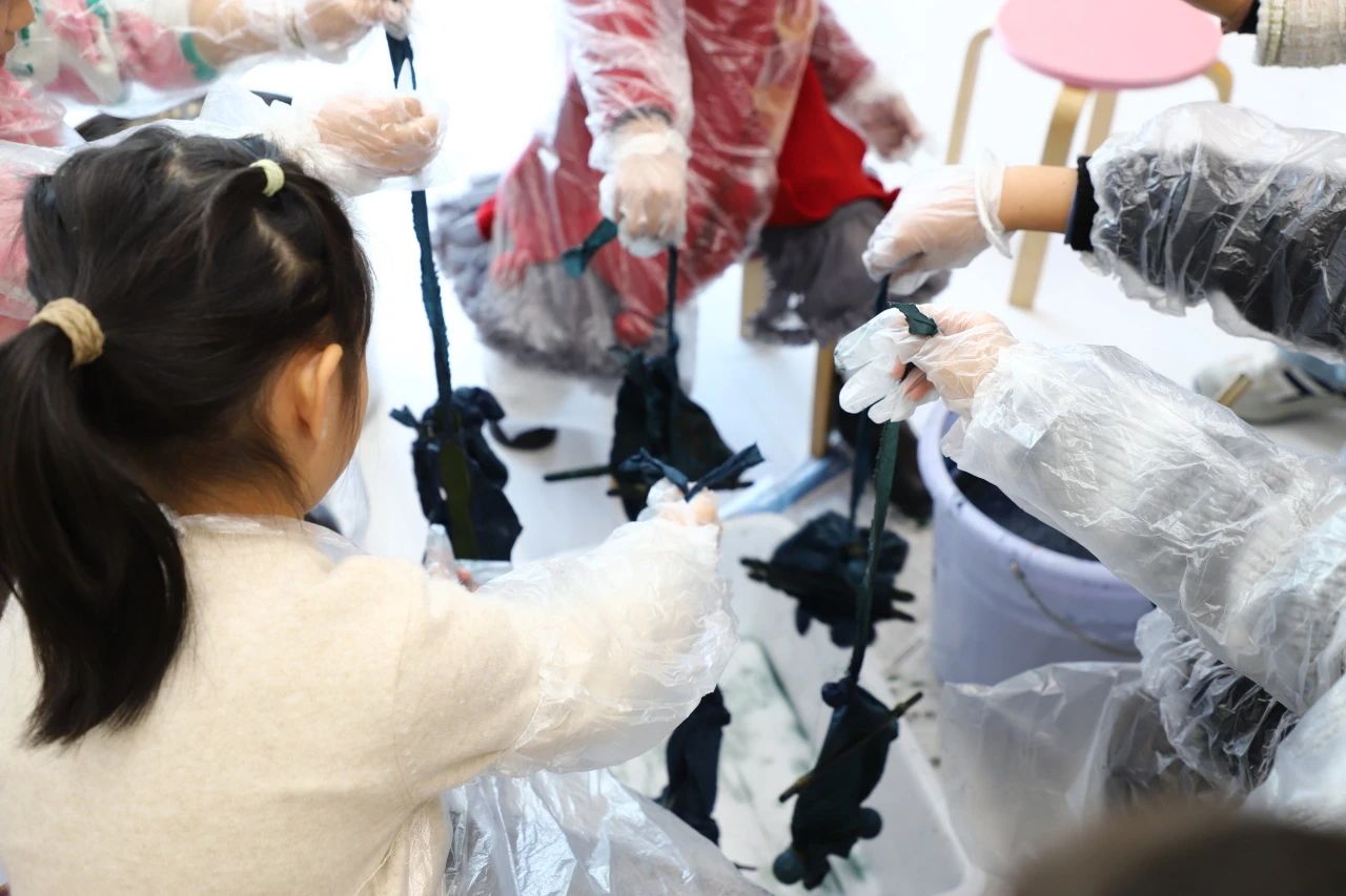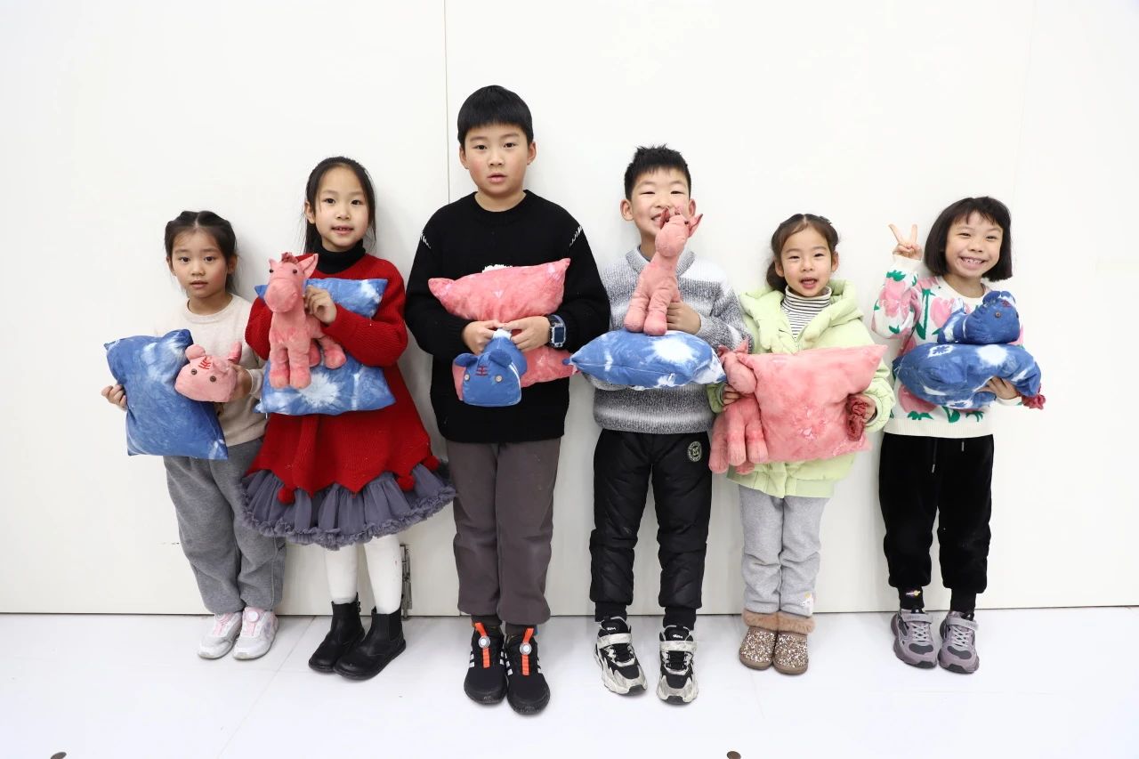 在每期的活動(dòng)里,小朋友們在荻原公教老師的帶領(lǐng)下運用古老的植物染工藝,染出絢爛色彩,扎染出舒適而溫暖的枕頭和造型各異的小動(dòng)物。