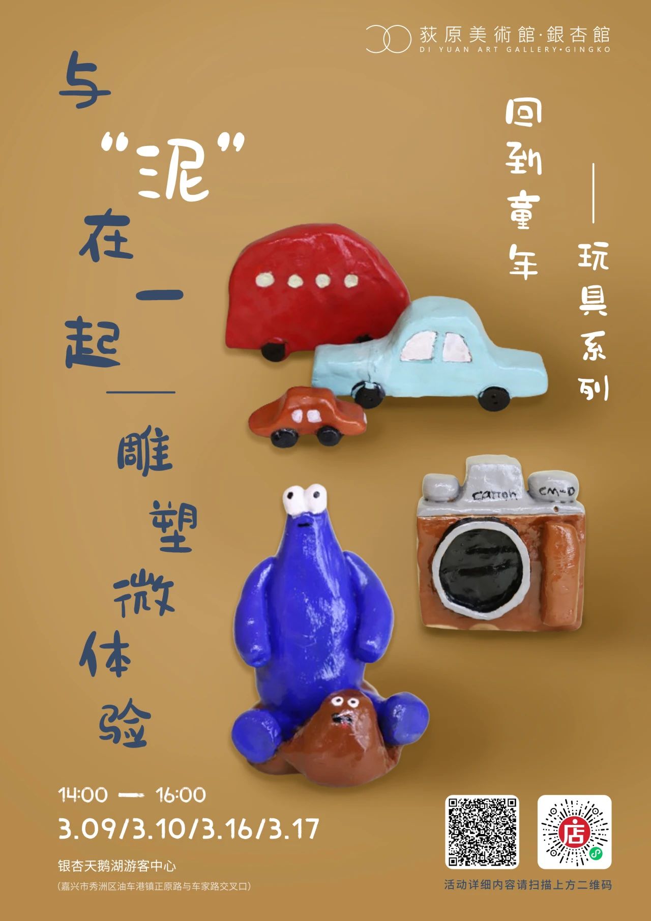 我們快樂(lè )玩耍時(shí)的大笑、興奮奔跑時(shí)的矯健、默默思索時(shí)的沉靜......每一個(gè)瞬間都是值得記錄的,它屬于我們記憶的一部分,讓我們用“泥土“來(lái)塑造一個(gè)個(gè)獨特的瞬間,記錄永恒的記憶吧! 活動(dòng)小tips 1、根據本次工作坊主題創(chuàng )造出不同造型的泥塑; 2、制作過(guò)程中使用噴壺工具控制泥坯表面干濕度,防止作品過(guò)快干燥出現裂縫; 3、捏出基本造型后運用泥塑工具調整局部細節,將作品雕刻成型(如需制作成裝飾品在這一步需要提前將零部件鑲嵌入內也可完成后膠水粘接); 4、成型作品交由工作人員快速風(fēng)干; 5、風(fēng)干塑形后的泥坯用丙烯顏料進(jìn)行表面裝飾上色; 6、表面上色后待丙烯顏料干燥凝固完成再用亮油增加表面亮光度,亮油干燥后作品完成。 本次活動(dòng)適合成人和小朋友體驗,歡迎大家來(lái)到荻原美術(shù)館銀杏館,制作屬于“泥”的藝術(shù)!